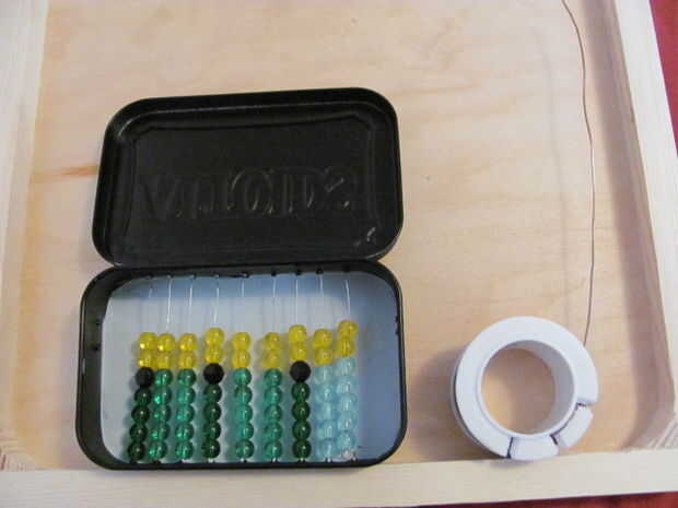 Asegúrese de que mantenga la 7 bolas en cada alambre y mantener las cuentas del 2 cielo en el borde superior.