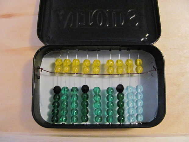 Ha utilizado un alambre más grueso para el divisor, string a través de los agujeros en los lados más cortos y pasar por debajo de los cables con los granos en ellos.