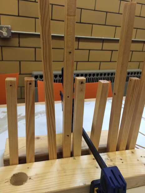 La estructura de madera es la parte fundamental del ábaco. Usted necesita para asegurarse de que usted construir dos cuadros idénticos, uno principal y un soporte, la única diferencia que las varillas en la parte delantera y una viga de apoyo en la espalda. En primer lugar, definitivamente Asegúrese de que han medido y marcado absolutamente todo. Este es el paso más importante! Es fácil para un proyecto que no porque cualquiera medida en metros, no pies. Una vez que todo está marcado, recorte las piezas básicas de la estructura y lijar. A continuación marque los orificios que necesita perforar, perforar y atornillar. Cuando termine, puede ser decepcionante, pero ahora necesita lo desarma todo--por lo menos si estás satisfecho con el producto. Esto es porque vas a barnizar a continuación. Nota que sólo utilizamos un gloss claro--si usted está usando un barniz de color, que usted probablemente tendrá que usar, deja secar y luego aplique el lustre. Lo mejor para el lustre es tomar dos tableros grandes, sujetarlos juntos y dejar suficiente espacio para poner las tablas verticales. Barniz los consejos y ponerlos en el sistema para arriba. Después de un tiempo corto y un barniz ligero, arena brevemente y repita la operación con una capa más pesada. Esta vez todo lo deje reposar por un día.