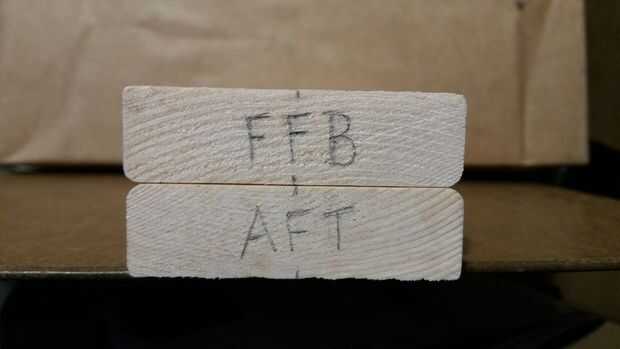 Otra cosa importante es la orientación de las placas. El extremo delantero del revestimiento de las placas superior e inferior debe estar orientada hacia la misma dirección, de lo contrario no alineen los agujeros de taladro. Cuando mirando la parte delantera de las placas debería ver las etiquetas y las letras de las etiquetas no debería ser al revés (Foto 2).