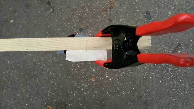 Una vez que la placa está sujeta a la parte inferior de la junta superior, voltear el tablero superior boca abajo y perforar 2 orificios 1/2 pulgada de ambos extremos y perfore un agujero en el centro. Usted quiere estar seguro de hacer siempre desde la parte inferior, en este caso de la perforación de la placa en el tablero superior. Ajuste la longitud de la broca para que se haga a través de la placa y luego 3/4 del camino en el tablero superior. No quiero perforar completamente el tablero superior.
