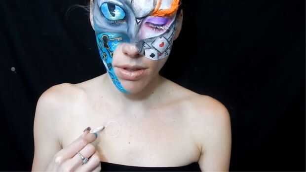 hice este traje premiado para Halloween 2012. Fue inspirado por la escena de Alicia en el país de las maravillas donde Alicia come una galleta que hace crecer tan grande, que aparece fuera de la casa del conejo blanco.Para este proyecto utilicé:-2 c