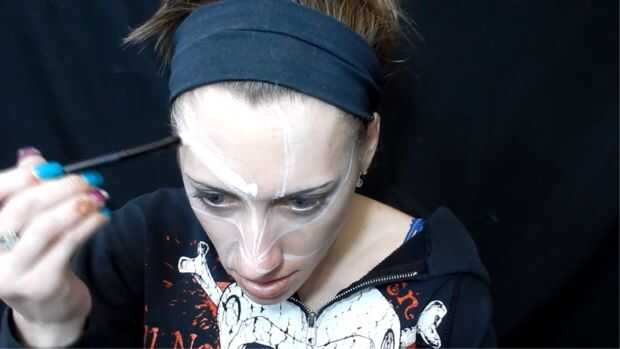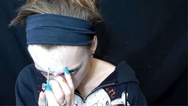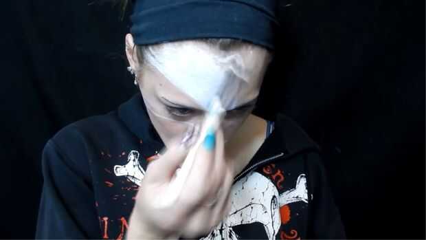 Mediante unas sombras de ojos marrón de mis cosméticos BH establezca y al azar había punteada alrededor del blanco.