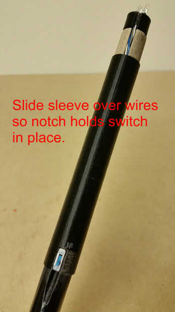 Deslice la manga sobre el pasador para sujetar todo en su lugar. Puede que necesite ampliar la muesca para colocar el interruptor.