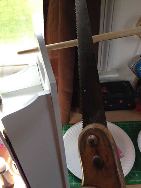 Luego utiliza una sierra pequeña de mano y corte plano en la caja. Pulir cualquier puntos necesarios en el pincel y añadir otra capa de blanco a la parte posterior. Este paso puede hacerse antes de pintar el cuadro de la primera vez, pero cuando hice mío no pensé agregar hasta que ya terminé con la pintura.
