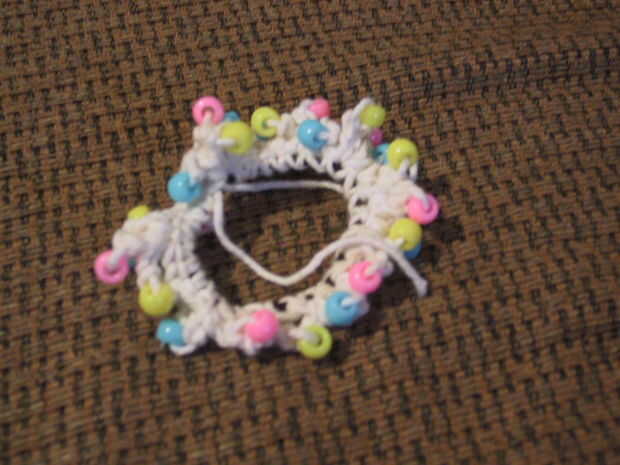 esta tobillera es ganchillo, complementado por los granos. Este un proyecto relativamente rápido si tienen experiencia con ganchillo y es un proyecto sencillo para aprender a hacer ganchillo con hilo o trabajando con abalorios y ganchillo.Sus manos s