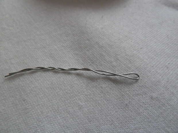 Para obtener tus cuentas en un hilo, mejor usted puede tomar un pedazo de alambre y hacer una 'aguja'. Porque usted puede aplanar un poco, que se ajusta a través de la cuenta.