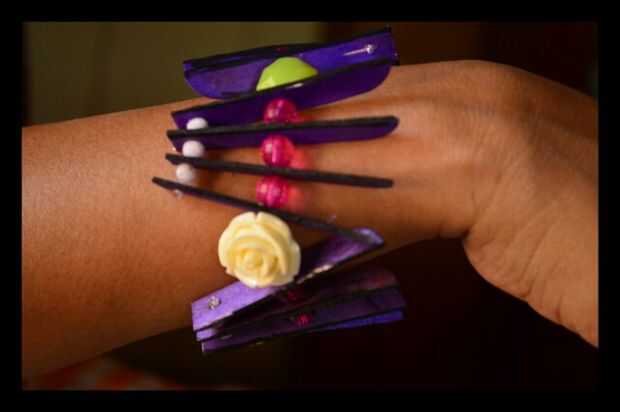 Esta elegante pulsera requiere que principalmente una mayor pega la paletas de colores disponibles. Además se necesita sólo variedades de granos. Pequeño siente granos, perlas de cristal de tamaño medio y perlas color de rosa se han utilizado para decorar.