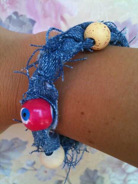 ¿qué grita verano lleva más de una pulsera trenzada del dril de algodón con estallidos de color en él? Este proyecto hace uso de su viejo par de pantalones vaqueros azul o retazos de mezclilla y los convierte en algo nuevo! Su nueva pulsera traerá diversión de moda a cualquier día de verano!
