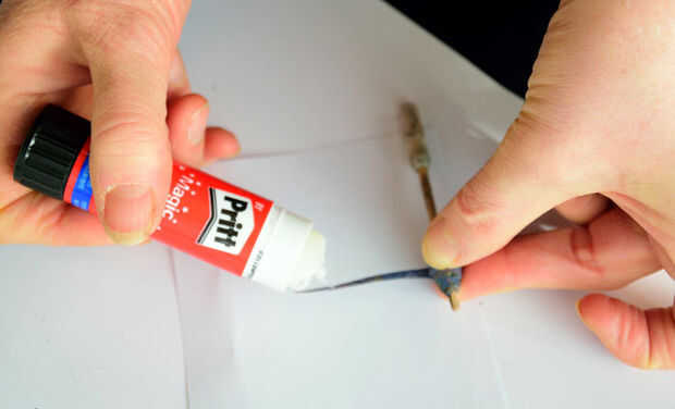 Cuando tienes aproximadamente una pulgada de papel izquierda, suavemente apriete algunos pegamento pegajoso blanco sobre él y limpie cualquier exceso con el dedo. Intento mantener un paño húmedo para limpiar los dedos pegajosos en pero yo principalmente uso mis jeans!!!!!! A veces uso para pegar los extremos en lugar de pegamento blanco Pritt Stick. Luego acabado laminado y firmemente liso abajo al final.