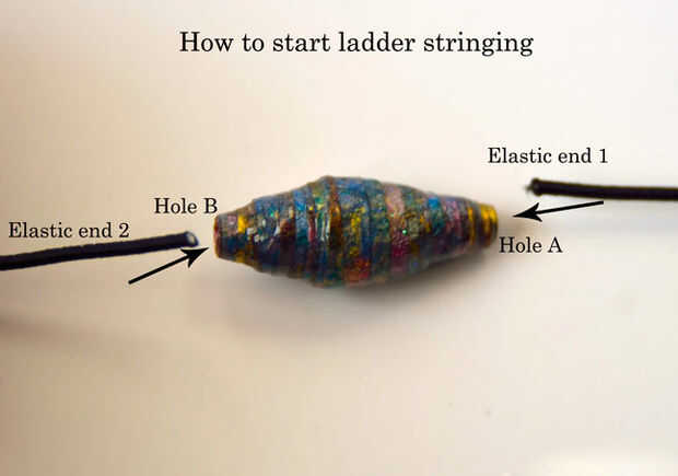 Tomar 4,5 pies de elástico de 1mm negro y poner sobre la mesa final 1 revestimiento grano orificio y orificio de grano frente a extremo 2 B según cuadro.