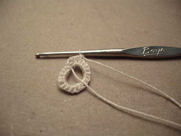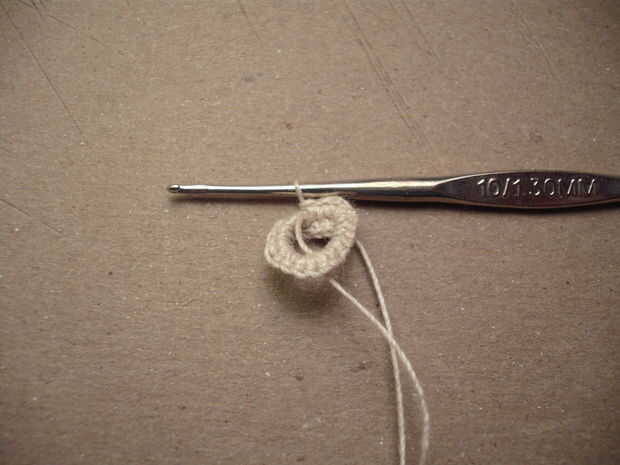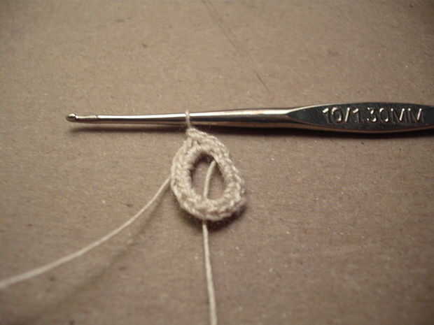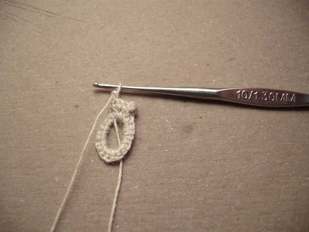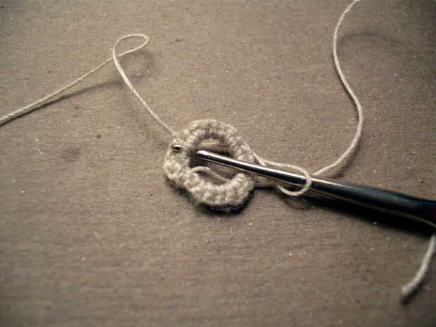 Vuelta trabajar alrededor. Usted está ahora va a crochet en las