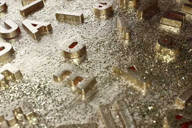 7. después de la primera capa espolvorear con purpurina antes de que se seque.