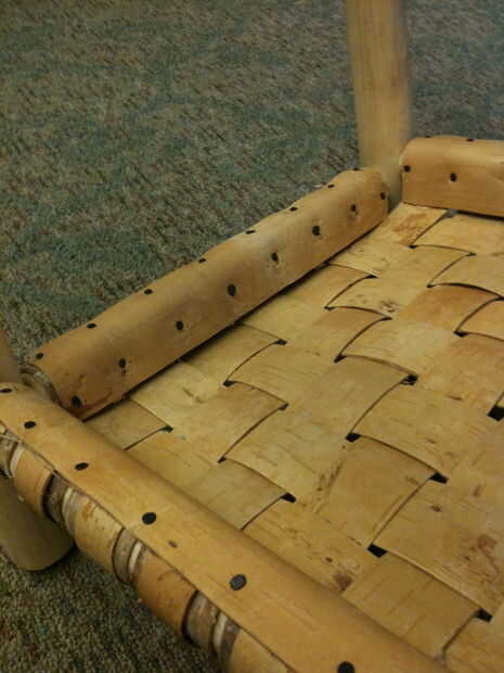 Para reforzar aún más la corteza, trozos de corteza pueden viró horizontalmente a lo largo de cada borde en la parte inferior del asiento (mi padre está llamando estas arandelas). Siempre que sea posible virar las arandelas entre las tiras para que no se parten la corteza que ya se viró hacia abajo. Recortar las esquinas de las arandelas para reducir el rizado y los lados para que no sean visibles desde la parte superior de las heces.