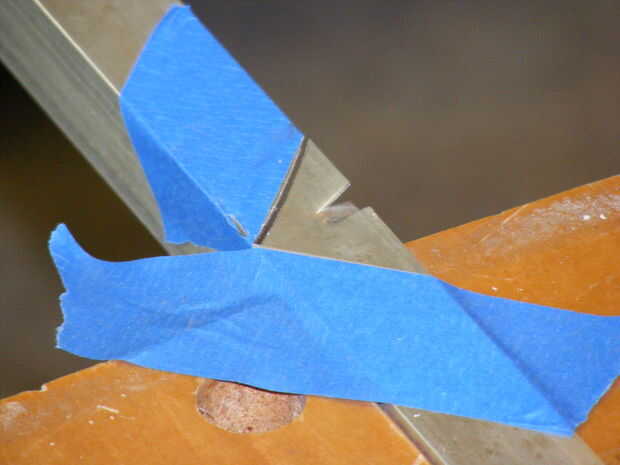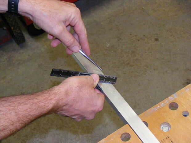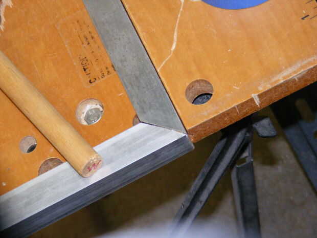 Para cortar aluminio, mida un ángulo de 90 grados y cortar con la sierra caladora. Luego fije con abrazaderas a un ángulo recto y suavemente doblar a 90.