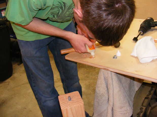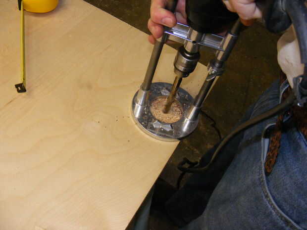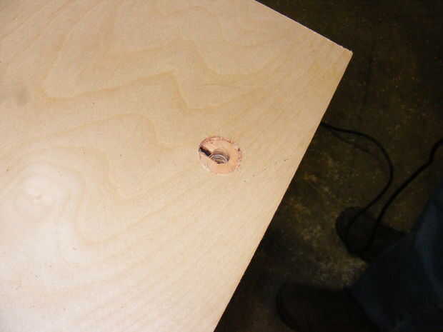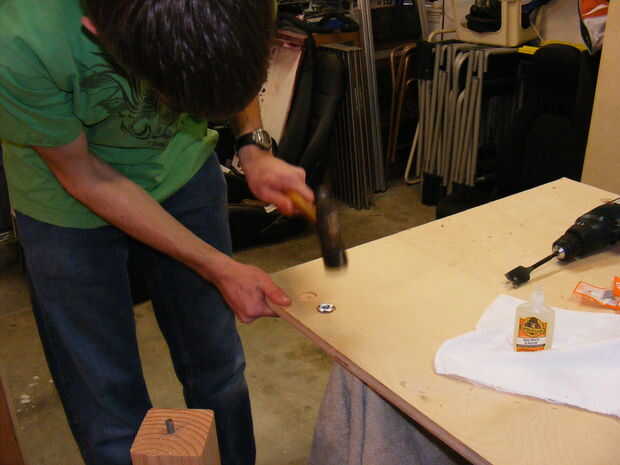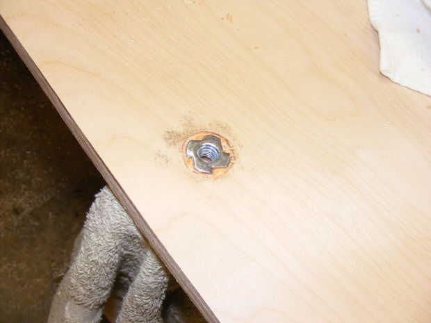 Al taladrar los agujeros, coloque una pequeña cantidad de pegamento alrededor del agujero y libra suavemente en las tuercas.