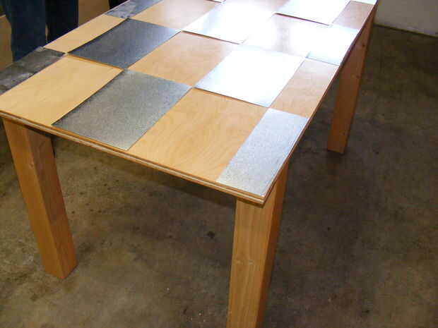 Diseño de los paneles de acero en el patrón deseado, luego con cinta adhesiva hacia abajo con cinta de doble palo. Puede pegar, pero cinta le permite eliminarlos o reorganizarlos debe elegir.