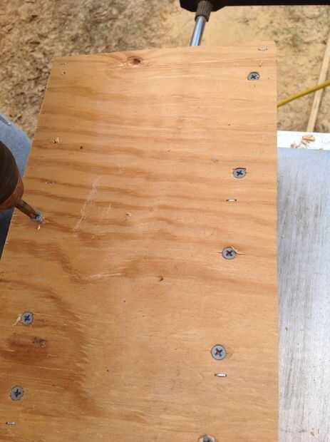 Cortar las piezas de madera a sus especificaciones. Pretaladrados los agujeros para los tornillos de fijación frontal y hacia los lados. Cola de carpintero le dará más estabilidad a la caja. Las líneas que ves fueron dibujadas en un ángulo como guía simplemente para dar a la caja de un diseño más elegante. Usted puede hacer su caja como lujo o llano como usted tiene gusto. El secreto para atrapar las abejas de carpintero viene un poco más adelante.