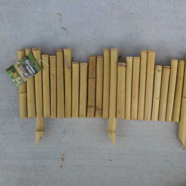 El bambú que usado previamente fue cortado en trozos de 6-8" y fue atado junto a utilizarse para el jardín ribete. Fue muy útil y debe ser fácil de encontrar en el centro de jardín de su ferretería local. Es fácil desmontar sacando el cable que los une.