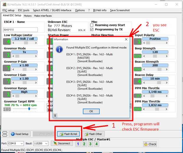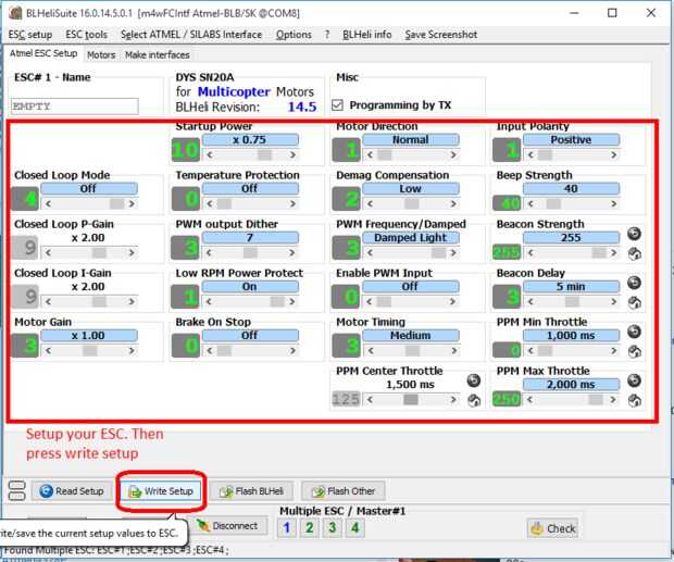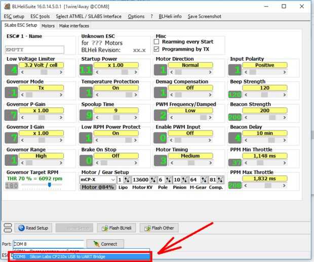 - Ejecuta BLHeli ya en su ESC