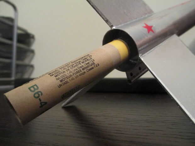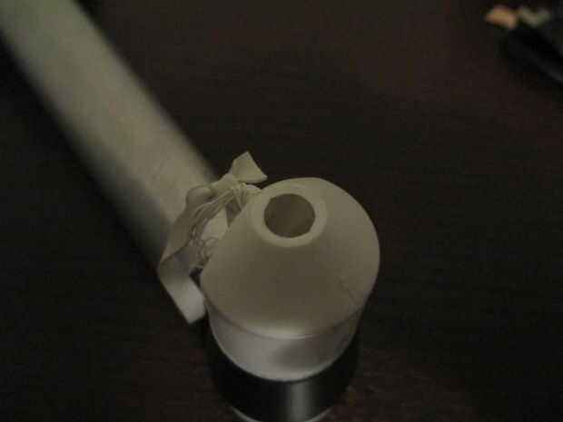 Mi segundo problema fue que mi cohete, siendo un cohete de dos etapas, debía modificarse para vuelo inferior (en interés de la recuperación del cohete o cámara). Usé uno de los tubos de cartón, que se incluye con el kit de construcción, como relleno en blanco eliminando la segunda etapa.