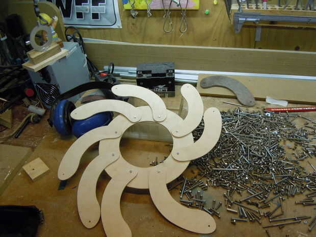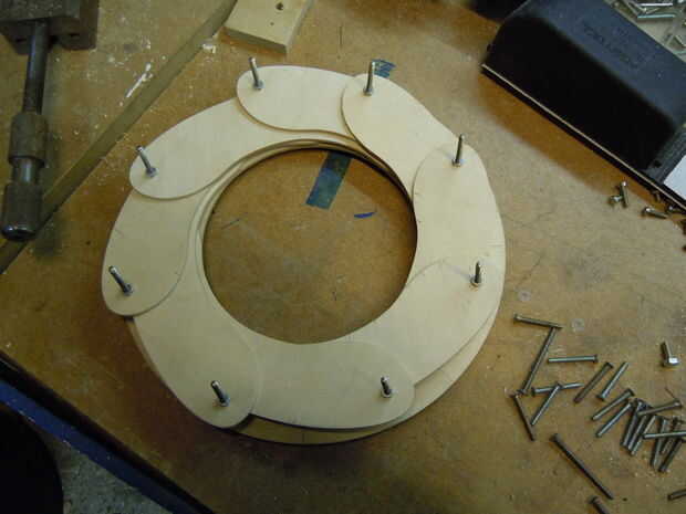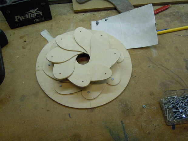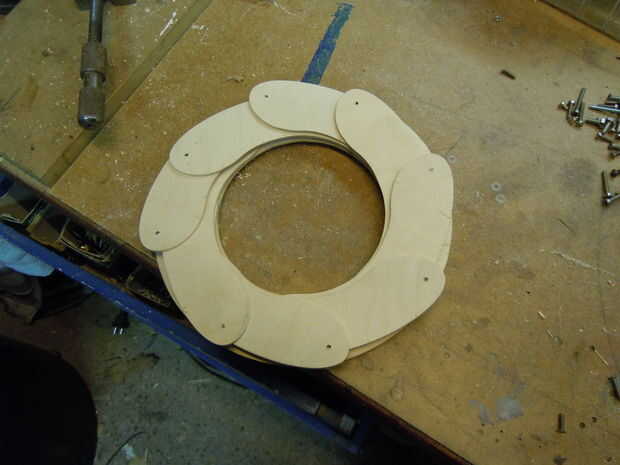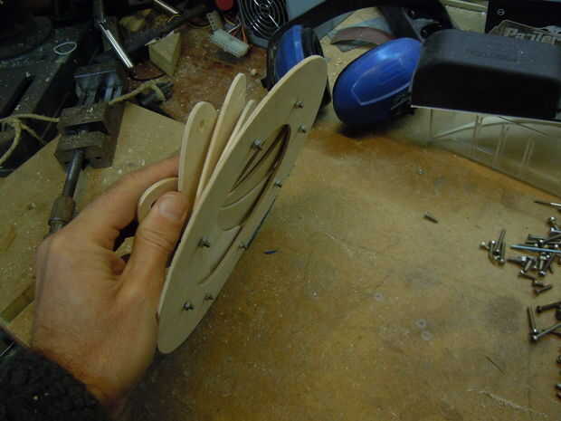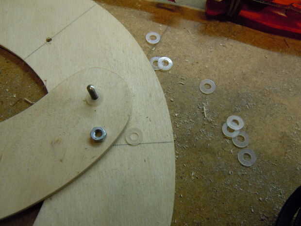 Perforar agujeros en el anillo de bisagra. Usar un brazo para encontrar el lugar adecuado colocando el brazo lo más cerca posible de la parte interior. Bisagra en el agujero del brazo debe ser countersinked por un lado y el agujero de alfiler de los brazos debe ser countersinked en el otro lado. He puesto arandelas de plástico entre el brazo, el anillo de bisagra y el perno para abisagrar mejorada. Probablemente funcionará sin o con arandelas de metal. Conectar los brazos con el anillo de bisagra. Ahora puede tratar de cerrar la abertura. Le satisfacen, utilizar el M2 (25mm) tornillos y pernos, para la construcción de los marcadores.