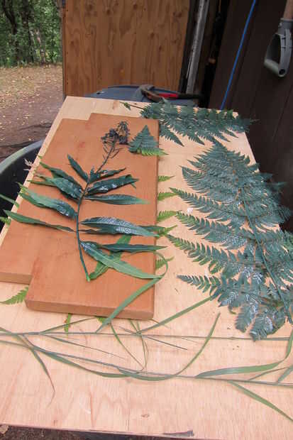 Escoge un par de flores agradables o helechos. Más de hacerlo, no necesita muchos! No se olvide de tomar una hoja de cada planta para no matarlos. (Sí soy un hugger del árbol :-) Mejor aún, usar flores de plástico (sobre todo si haces este proyecto con un gran número de personas). No funcionan así, pero ahorras algunas plantas :-) Y son grandes usar en el invierno!