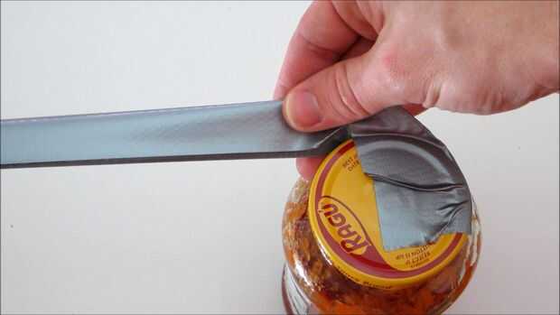 Tomar las primera pocas pulgadas de la cinta y doble hacia abajo en la parte superior de la tapa. Esto lo ayudará a pegar mejor. Luego tomar el resto de la cinta y dobla por la mitad. Esto le ayudará a reforzar las fibras individuales de la cinta del conducto y evitar que se rasgue.