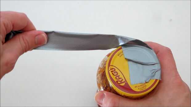Sostenga el frasco con una mano y tire de la cinta con la otra. La tapa debe soltarse. Si tienes una tapa especialmente mal y el conducto se rompe la cinta, pruebe a utilizar varias capas de cinta adhesiva. Esto le debería ayudar a mantener Unidas. Bueno, hay un mayor uso de cinta adhesiva. ¡Que te diviertas!