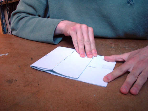 Por último, pegar el otro extremo en sí mismo como se muestra. Esta característica añade rigidez y significa que sólo tienes que imprimir en un lado de la tarjeta.