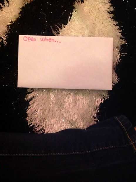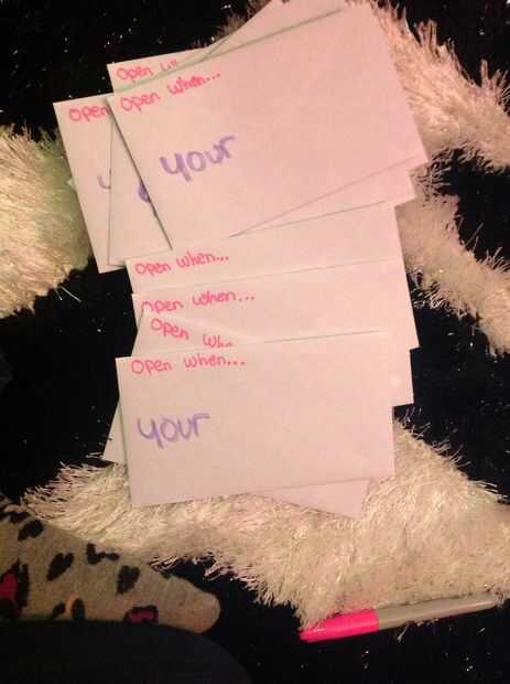 «abierto cuando...» Hacer colorido y el decorar los sobres pero en el centro escribir palabras como "el triste" "el loco" para que pueda abrir la envuelve cuando su sensación de malestar. Se pueden hacer repeticiones.