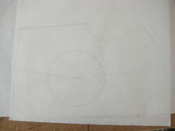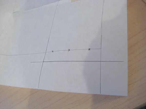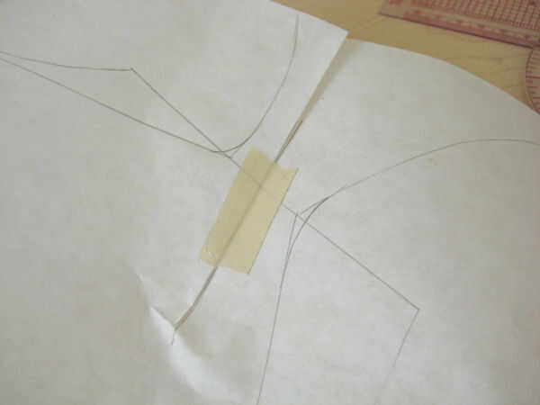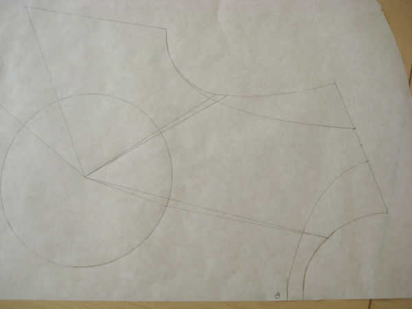 Trazar desde el principio del dardo francés alrededor de la blusa hasta llegar al dardo en la sisa. Girar eso Dardo del sisa cerrada, continuar el seguimiento del dardo de la sisa a la otra pierna del francés Dart. La línea de la sisa ya no es una línea continua suave. Necesita "true" la línea por lo nuevo. La forma preferida de hacerlo es dividir la diferencia.