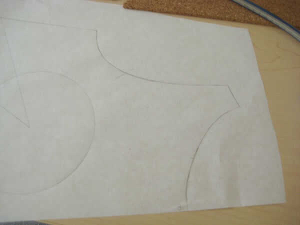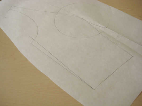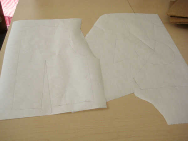Trazar la parte posterior del bloque. Cerca de los dardos y fijar (yo usé cinta adhesiva).
