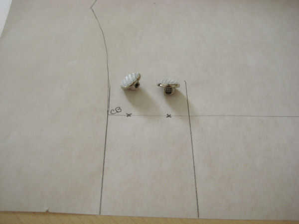 Ahora es necesario determinar cómo desea el corte posterior que se formó. He creado un cuello y cintura botones superposición y establecidos los botones para determinar el arreglo que me gustó mucho visualmente. Luego, simplemente dibujar en las líneas que se convertirán en sus líneas de costuras.