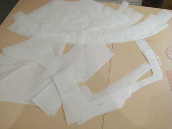 Crear piezas de entretela fusible el cuello/hombros y la espalda que no se cruzan en el margen de costura para reducir volumen.