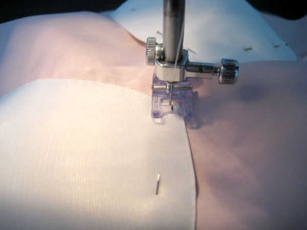 Coser las dos líneas de princesa de la guarnición de la blusa. Las copas del busto serán cosidas en el interior de la guarnición. Utilice la costura princesa para alinear la parte superior de la Copa de busto y colocarlos a la misma distancia de la costura lateral. Toma un poco de clavos y suavizado pero desea que las copas del busto a sentarse suavemente dentro de la guarnición. Coser las copas del busto a la guarnición con una puntada de zig-zag.