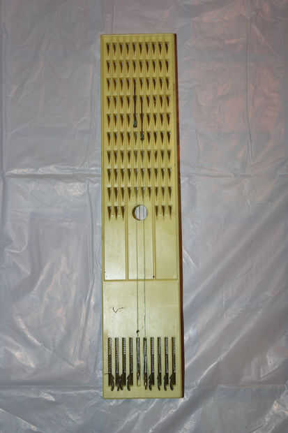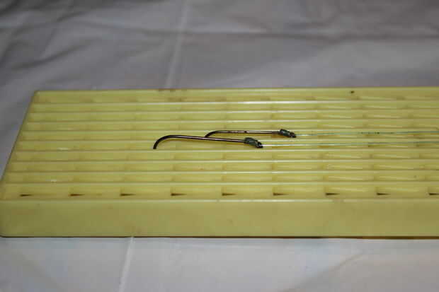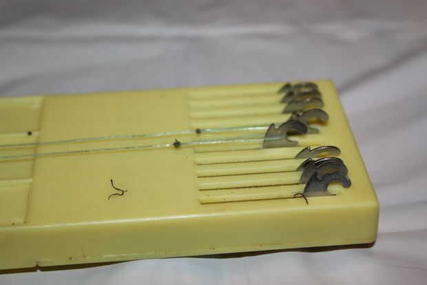 1 que los líderes en los ganchos a veces sería demasiado largo o demasiado cortos para línea hasta los agujeros precortados gancho dando por resultado líneas que eran o demasiado flojo y fácilmente golpeó el titular, o apretado y obtendría puntos débiles usados en la línea (donde se conecta a la línea en el poste de la derecha.)