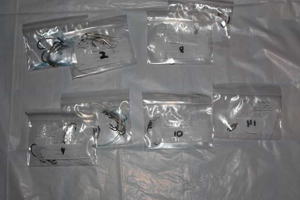 Etiquetar las bolsas con un rotulador basado en lo que anzuelo de tamaño que contiene.