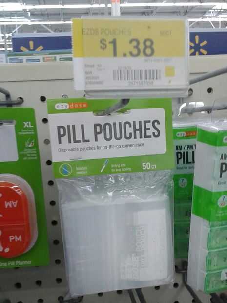 Cada píldora de la bolsa es una bolsa con zipper de 2 "x 3" y usted puede recoger un paquete de 50 a menos de 2 dólares en la mayoría de las farmacias.