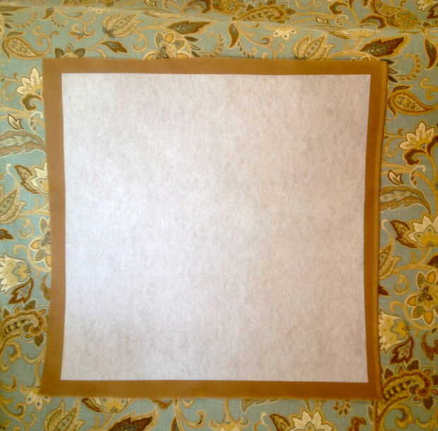 He decidido trabajar con un margen de costura de 1". Puesto que mi almohada es cuadrada de 20", he cortado una de 22" x 22" trozo de tela. Estoy usando un lino que arrugas horriblemente, así que he planchado una 20 "x 20" Plaza del hierro-en interfaz a mi tela. Estoy esperando que la entretela mantendrá la tela relativamente arruga libre cuando tengo que lavar esto en el futuro. ¿Funcionará? ¿Quién sabe?