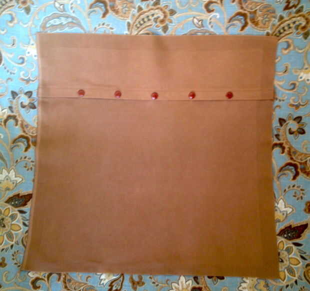 Colocar el ojal corta para que el borde acabado sobresale el borde acabado del rectángulo más grande por 1". Meter un lápiz en el centro de cada ojal con motivo de la colocación de los botones. ¿Adivinar qué será lo próximo? Ir a coser los botones. Ver mi Instructable sobre cómo coser un botón por la máquina de forma rápida y sencilla.