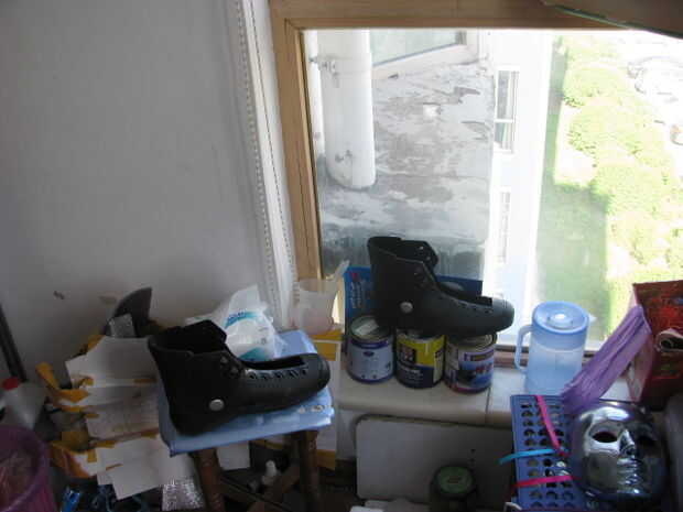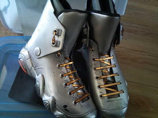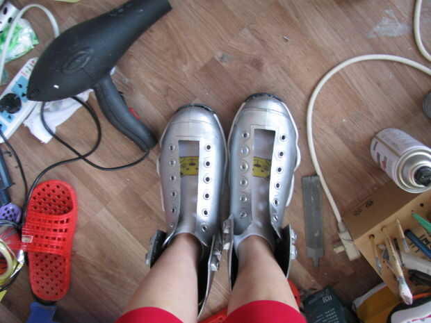 Hey comunidad,ya que soy un tipo tan tacaño con tendencia a reciclar cosas viejas yo me hizo unos zapatos del entrenamiento del ab (o lo que se llaman) de un par de viejos senderismo zapatos y algunos tornillos, ángulos y arandelas :-) (bueno, tener