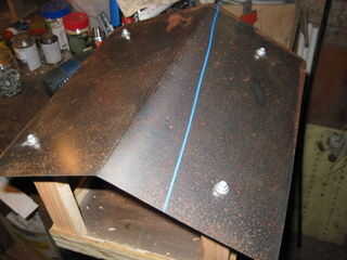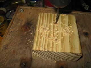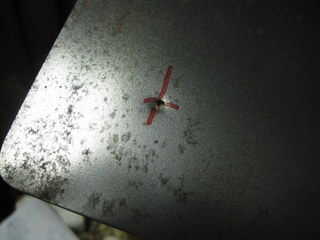 Vuelva a colocar el alimentador en la mordaza para que señalan encima de los montantes. Centro de la azotea en los montantes. Desdeel lado y marcar la línea media de una vertical en el techo. Sin mover el techo, mirar en la misma vertical del extremo y marcar la línea media en el techo. Donde se cruzan las dos marcas es donde perforar a través del techo. Antes de taladrar, quitar el techo para la mesa de trabajo y utilizar un punzón o un clavo grande y martillo para hacer una depresión de la broca descansar en medida que taladra. Perforación en metal plano generalmente resultados en el bit "caminar" de donde quieres que haga. Vuelva a colocar el techo y marque la parte superior de la vertical, a través del agujero en el techo. Quitar el techo y taladre un orificio guía vertical en la posición vertical.