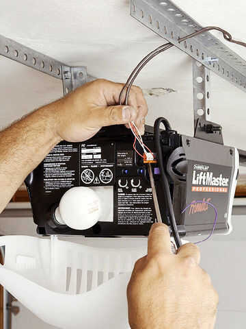 Los relés se utilizan para simular un botón apretado que a su vez hace que las puertas del garaje abrir y cerrar. Cada canal de relé está conectado para el abrepuertas de garaje idénticamente a y en paralelo con el cableado existente de botón. Usted querrá consultar el manual de tu modelo o experimento con clips de papel, pero debe cablearse en algún lugar detrás del motor, como se muestra en la imagen.