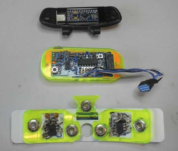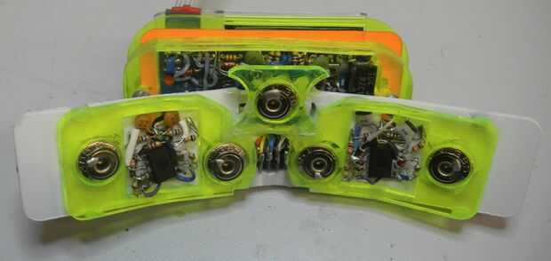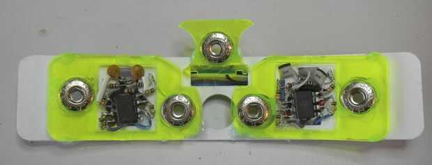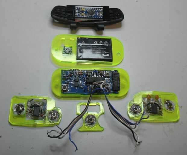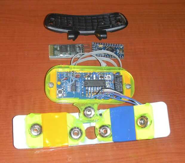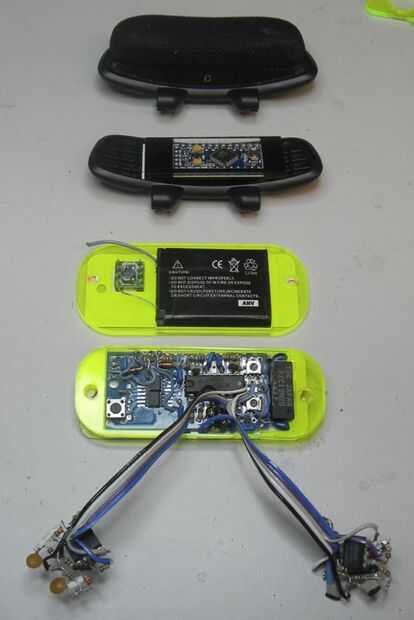todas las otras partes: Arduino, batería y DC-DC, filtro y es parte del cojín cabeza de HMD.