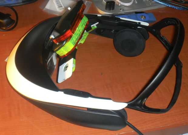 poner todo junto como foto cojín cabeza HMD unidad corte laser. pero poco grande caben todos. también podemos poner cabeza sólo activa a cojín de la cabeza y otra unidad: amperios de la batería y filtro pueden ir parte de HMD.