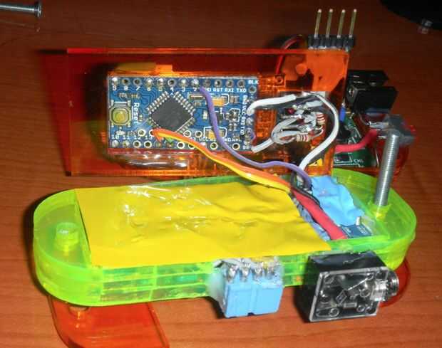 Conecte el cable de 4 pin entre filtro Amp unidad y Arduino Nano. use solamente 3 cables. Arduino mini pro usa poder de unidad de filtración.