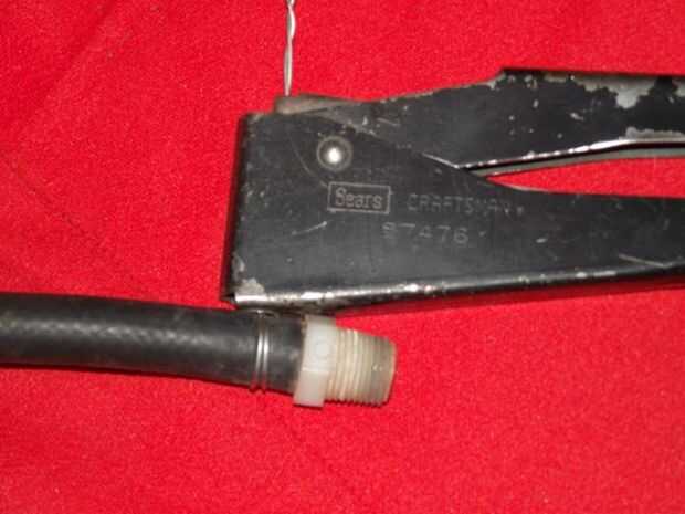 Apretar el alambre sobre el tubo asegurándose de que está recto todo el camino alrededor y aprieta en la púa.  Haga clic en la remachadora pop, apriete el cable.  No apriete demasiado. o se romperá el hilo.  Juzgar la compra tensión viendo el cable Presione la manguera.  Al llegarlo suficientemente apretado, doble el alambre hacia afuera que le resbale cuando retire la remachadora pop.  Ahora quite la remachadora pop