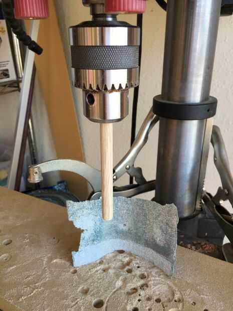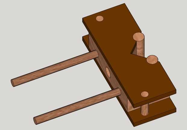 Corte dos piezas largas de 5 pulgadas de 3/8" espiga. Los tacos deben ser capaces de deslizarse hacia adelante y hacia atrás con suavidad a través de la placa móvil. Si es necesario, lije las espigas (puede hacerlo con un taladro de columna, véase el cuadro). Pegar las piezas de espiga en la pieza fija de la quijada. Utilice el control deslizante móvil para mantener los tacos alineados mientras pegado.