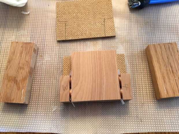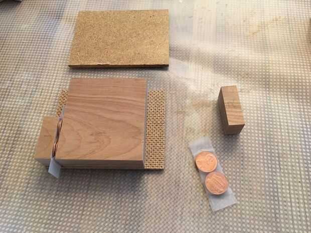 Ahora pegan un bloque (aglomerado de madera – madera –) como se muestra en el diagrama y fotos. Usé monedas apiladas y grabado juntos durante el pegamento para crear la ranura de la banda de sujeción. Retire a los espaciadores de penny después de unos 15 a 20 minutos antes de que el pegamento se seque completamente.